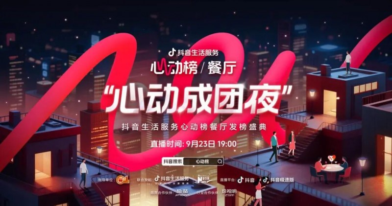 上抖音搜索“心动榜餐厅”,预约9月23日晚7点直播,共赴心动之约!此外,晚会期间还将送上多重“心动福袋” ,免单等多重惊喜好礼,等你来赢!