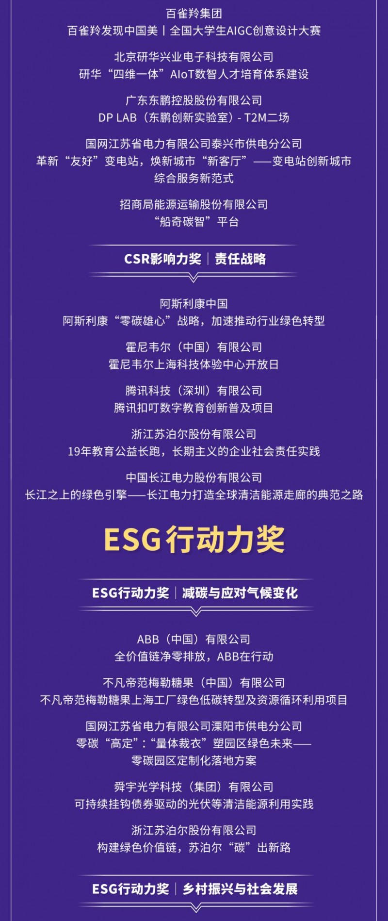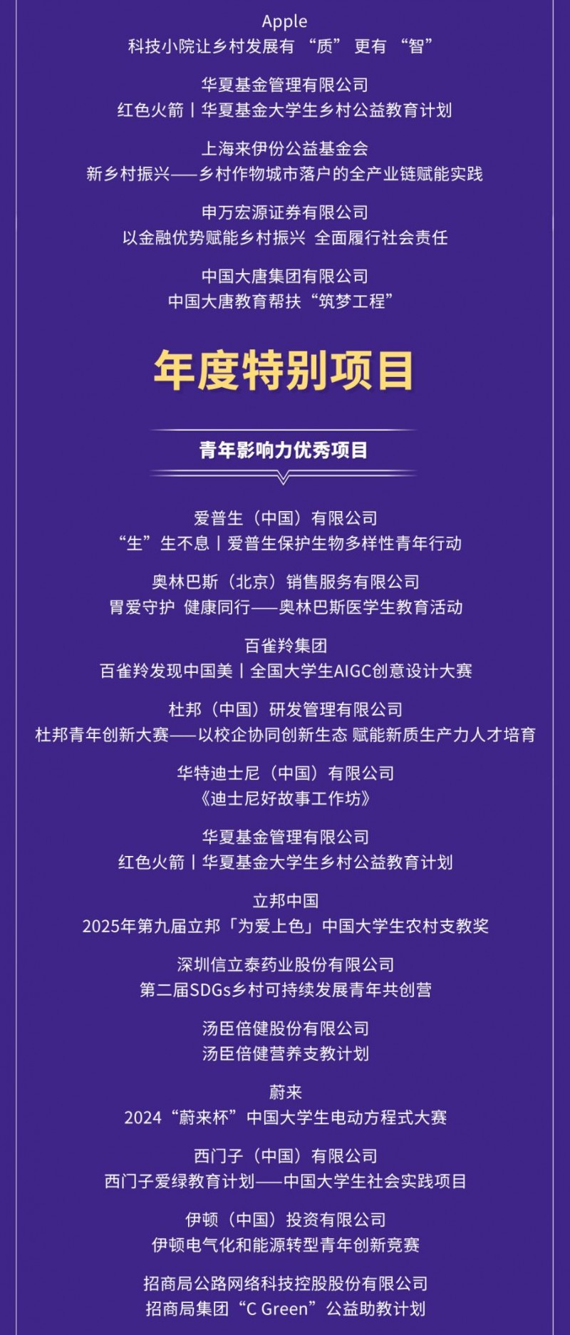 同期发布的《2025年CSR中国教育榜优秀案例选编》收录了35家企业的38个优秀项目。《选编》将面向政府、行业、企业、高校、专业机构、媒体等相关方发布,深度触达4万+中外企业和500+中国顶级高校,直接影响超过400万职场青年和4,000万青年大学生,助力更多企业将CSR/ESG融入核心业务,共同探索责任创新的更多可能性。