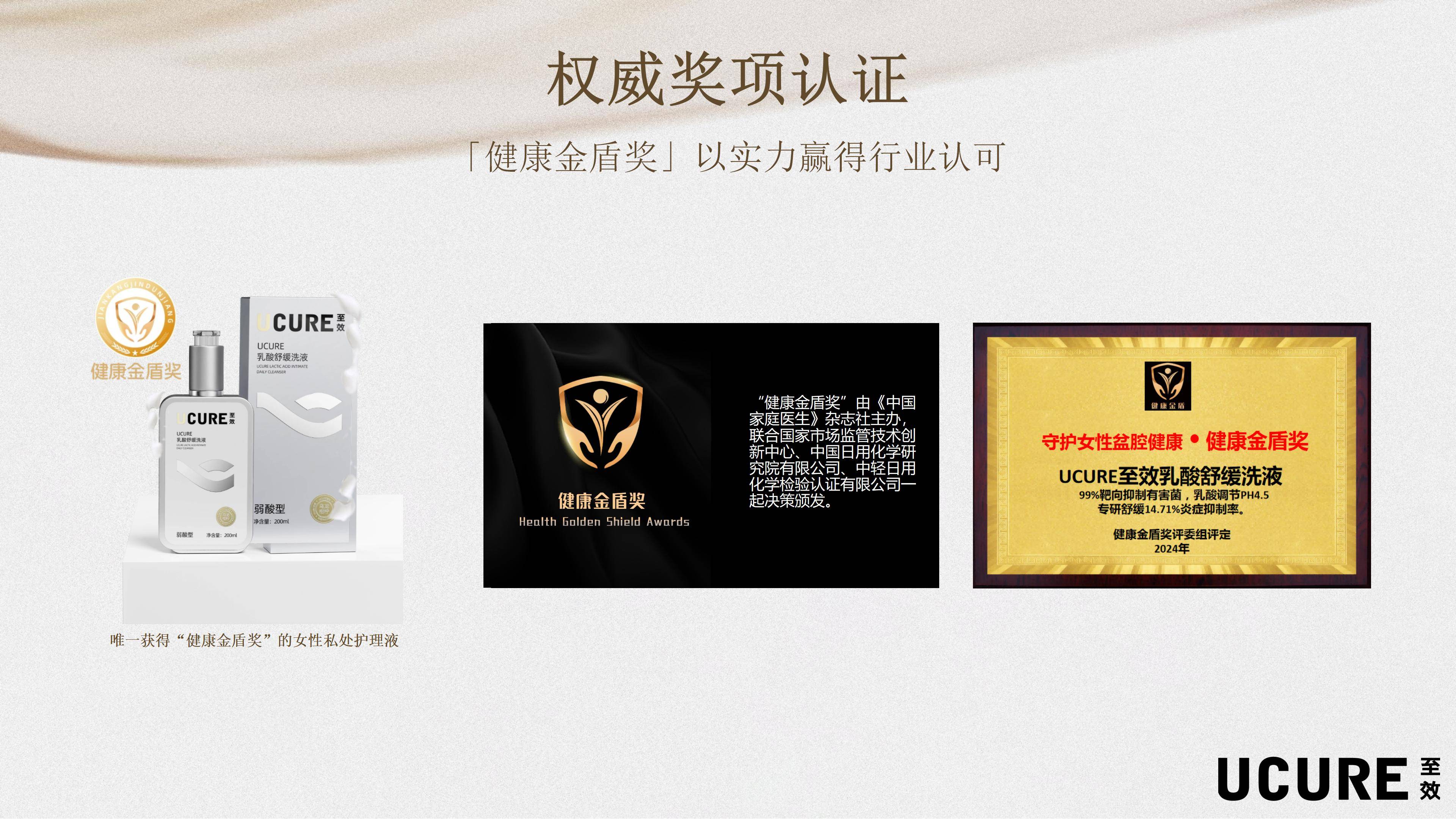 在产品荣誉与用户口碑上,UCURE至效的乳酸舒缓洗液,成功斩获《中国家庭医生》颁发的“健康金盾奖”。该奖项由国家市场监管技术创新中心、中国日用化学研究院等权威机构联合评定,是行业内极具含金量的荣誉,充分印证了产品的领先品质。这款产品能做到99% 靶向抑制有害菌,专研舒缓配方实现14.71%炎症抑制率,通过乳酸精准调节PH3.8至4.5的健康区间,凭借实打实的效果获得了广泛认可。